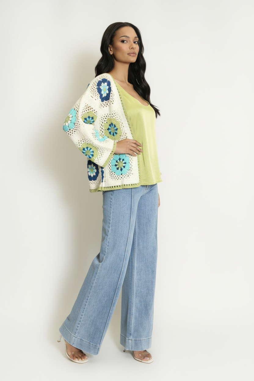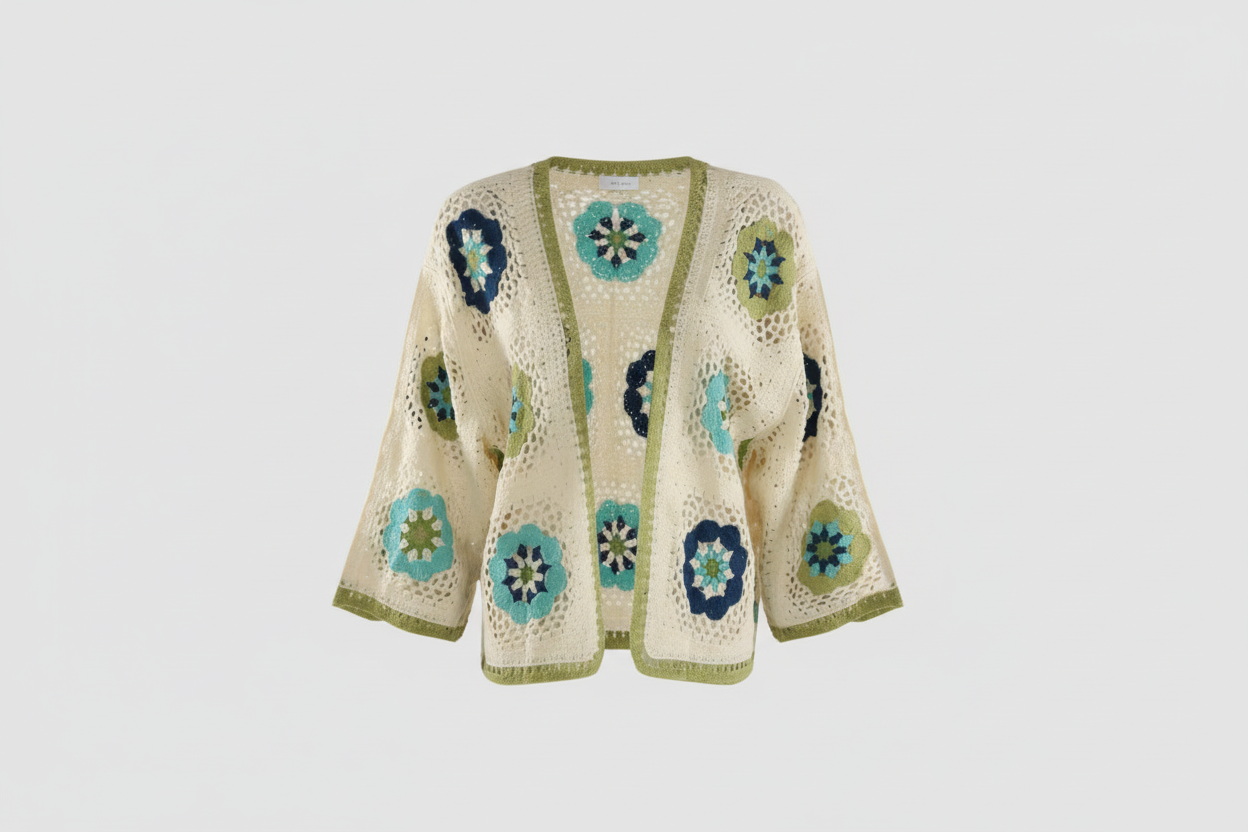 Introducing Bloom – a beautifully crafted open floral crochet cardigan that brings effortless elegance to any wardrobe.