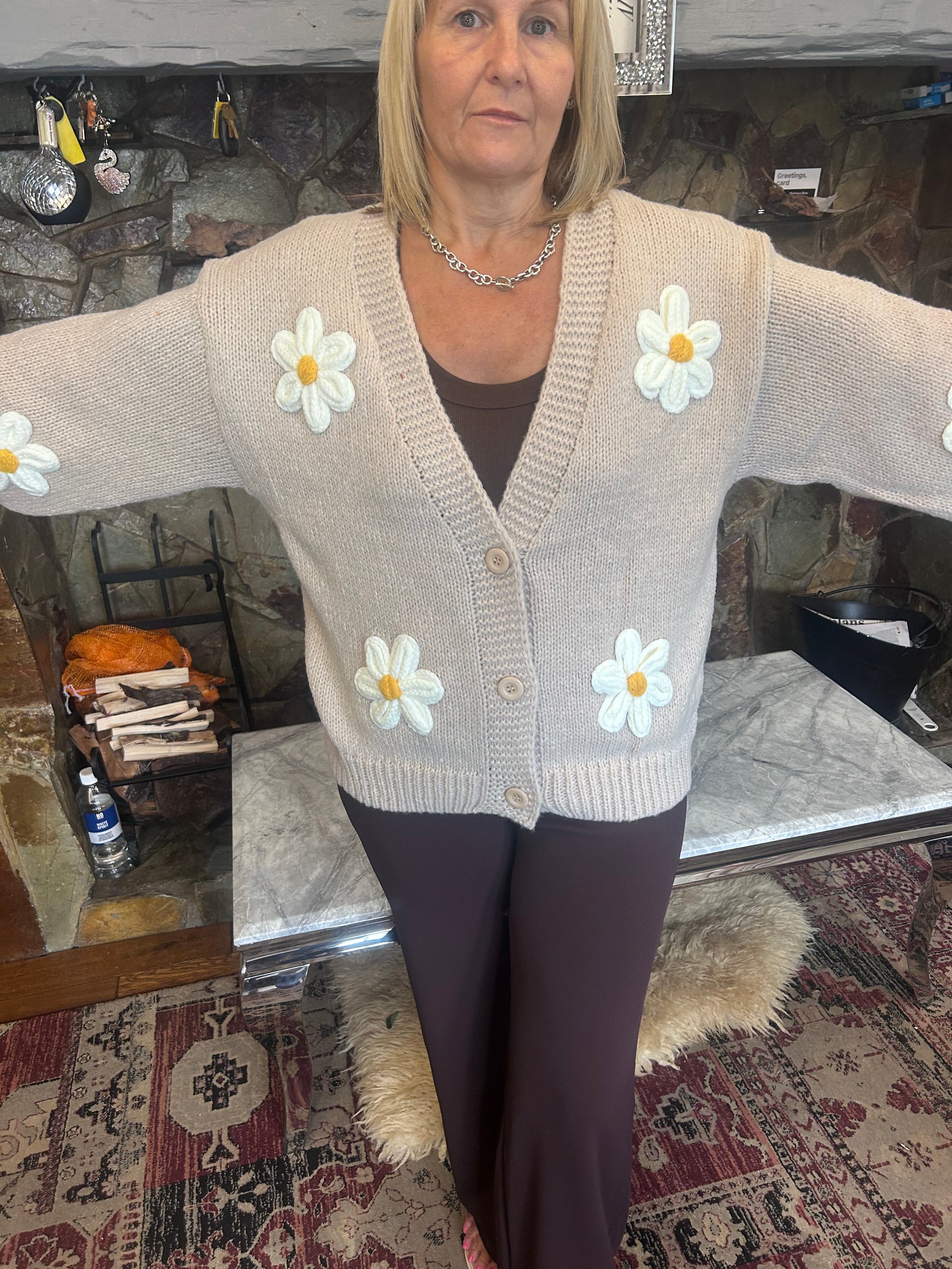 Introducing Daisy - The Cozy Knit Cardigan with Playful Floral Detail