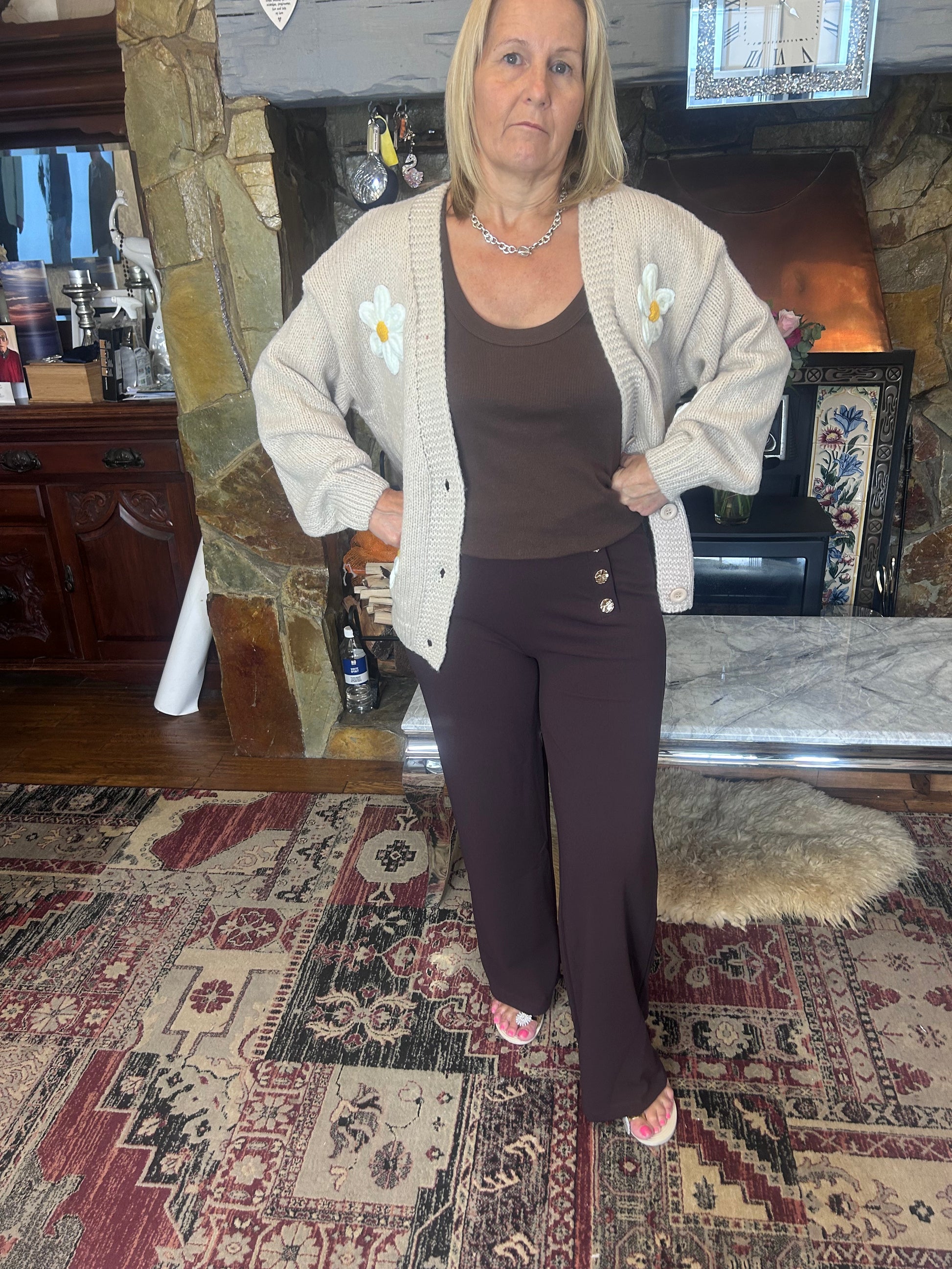 Embrace effortless charm with our stunning Daisy cardigan. This beautiful premium quality knit piece combines cozy comfort with playful sophistication, featuring delightful floral details and elegant button-down styling that creates the perfect layering piece for any season.