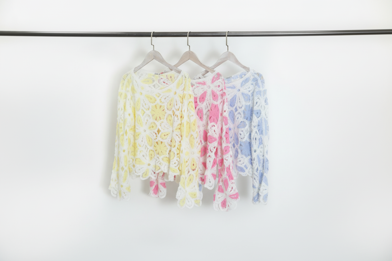 Introducing Daisy – an exquisite floral crochet jumper that brings Parisian elegance to your everyday wardrobe.