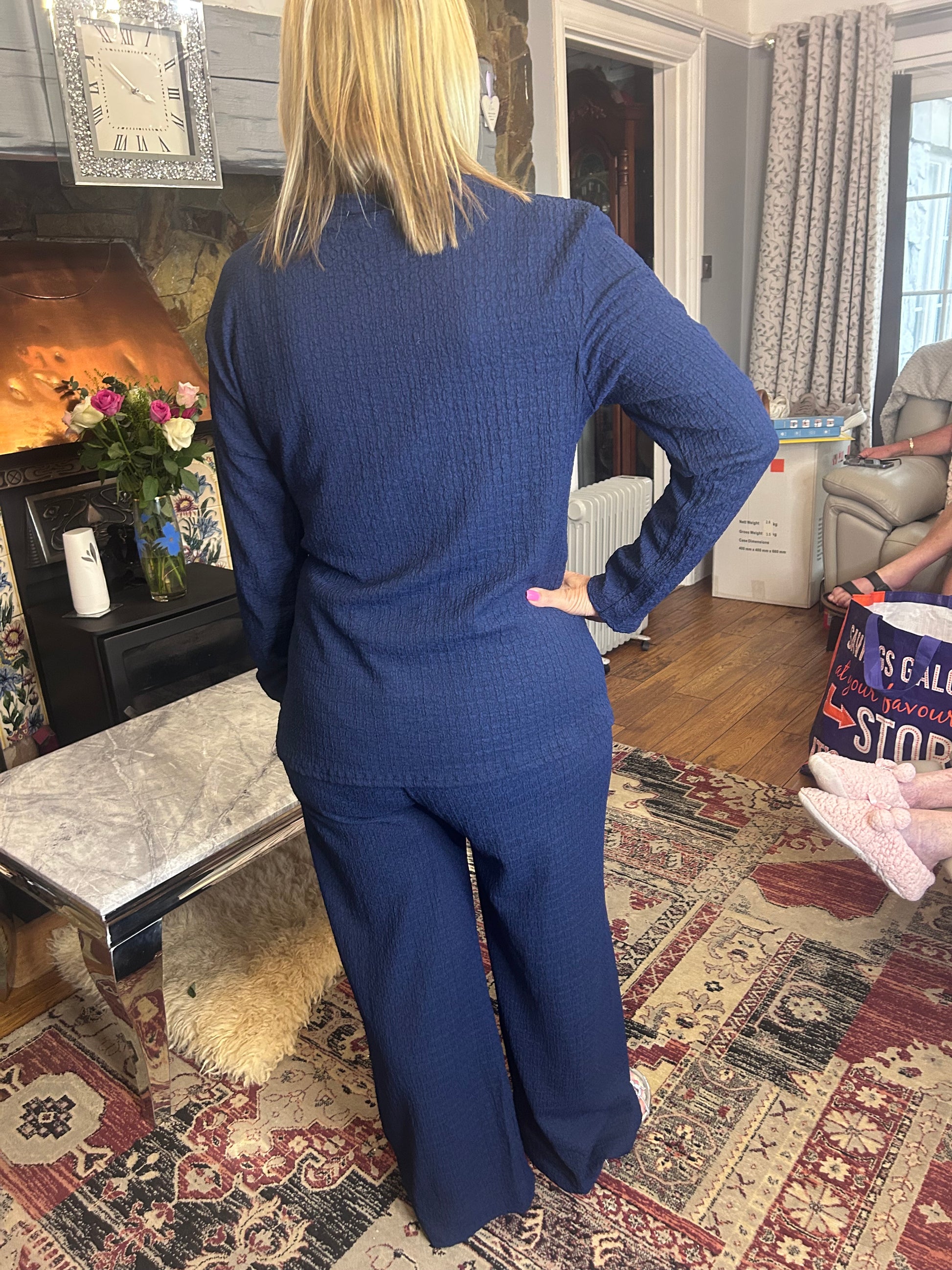 Discover effortless sophistication with our stunning Diana tie-front lounge set. This beautiful Italian-made piece combines contemporary style with ultimate comfort, featuring a unique asymmetric tie-front detail and luxurious bubble effect fabric that creates the perfect relaxed yet polished silhouette.