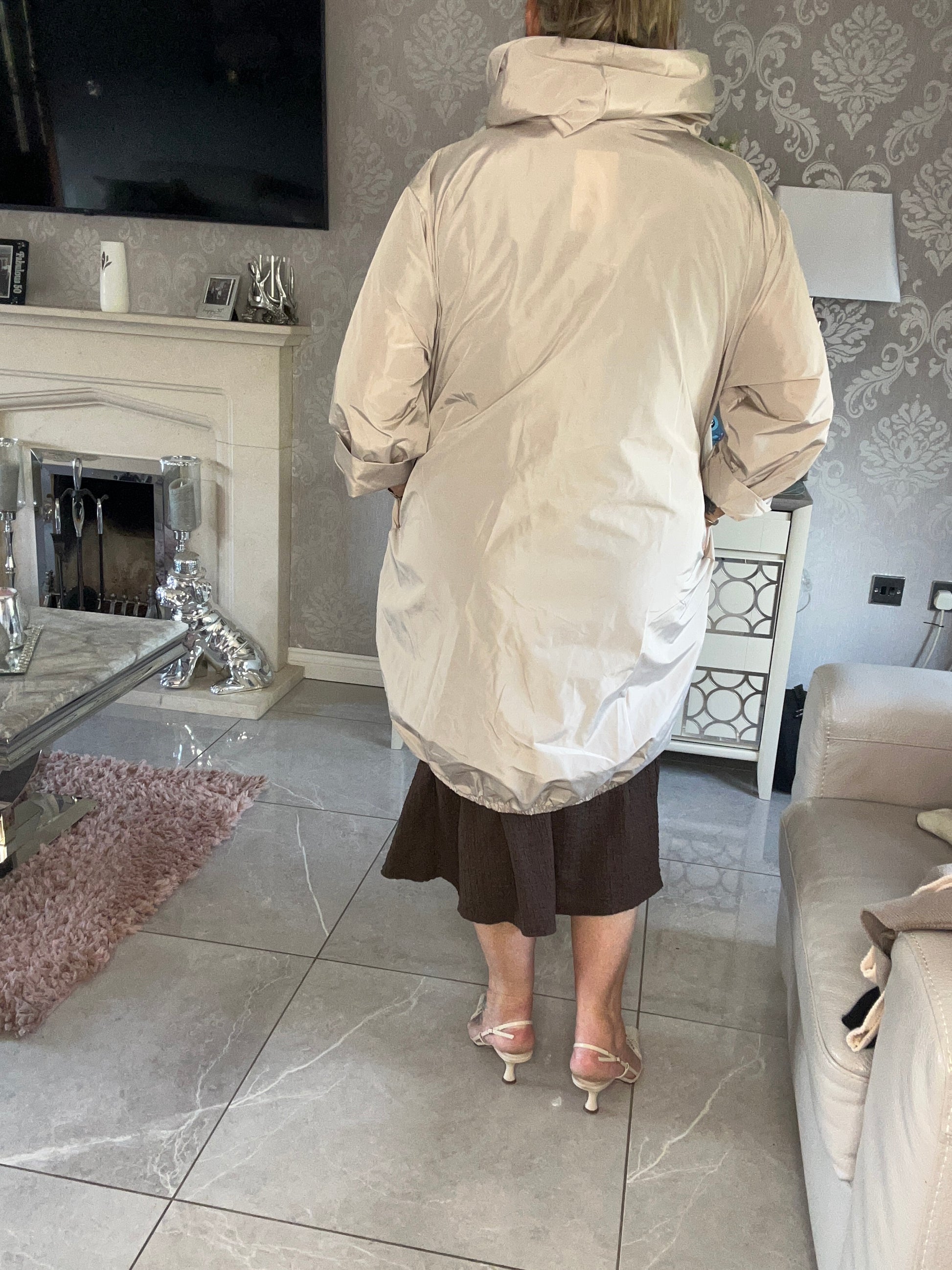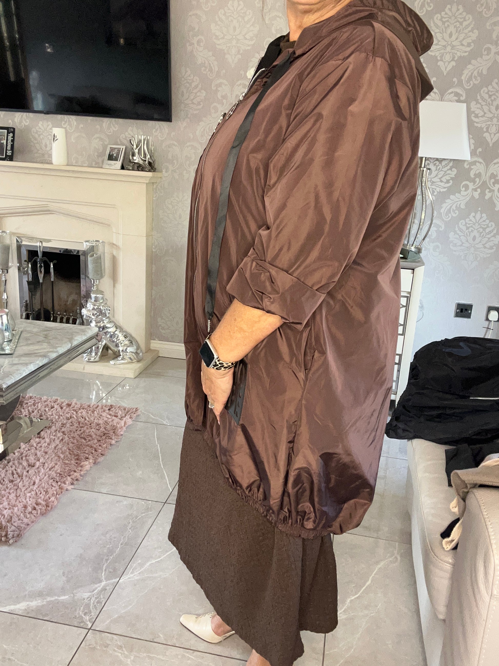 This elegant raincoat effortlessly transitions from practical outerwear to fashion statement. Layer over your favourite autumn outfits, pair with jeans and boots for weekend errands, or wear over a dress for smart-casual elegance. The dipped hem adds a contemporary touch that sets it apart from ordinary raincoats.