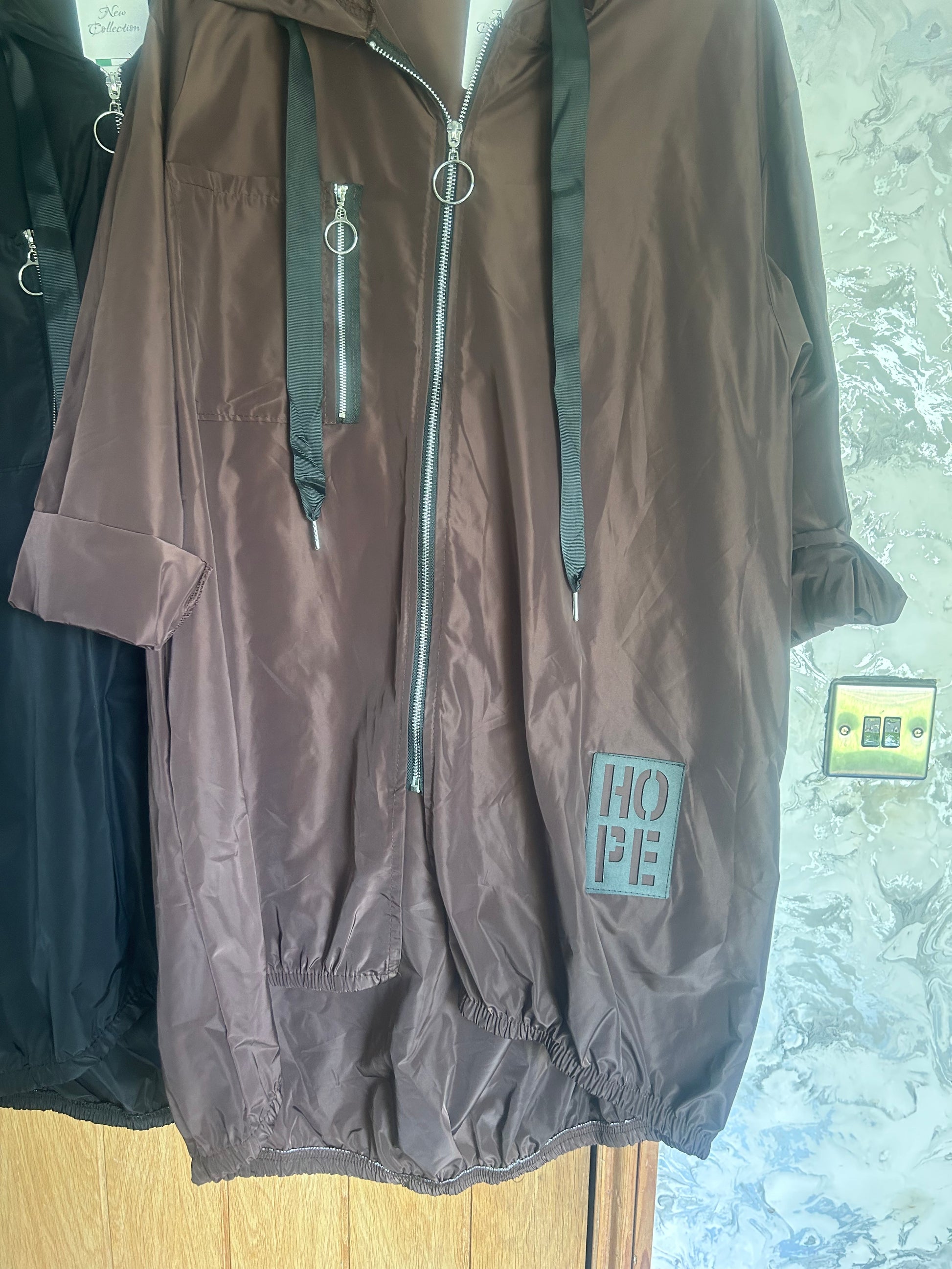 Stay stylish and dry with our stunning Ebony raincoat from the HOPE collection. This luxurious Italian-made piece combines practical weather protection with contemporary design, featuring a unique dipped hem and thoughtful details that make it perfect for the modern woman on the go.