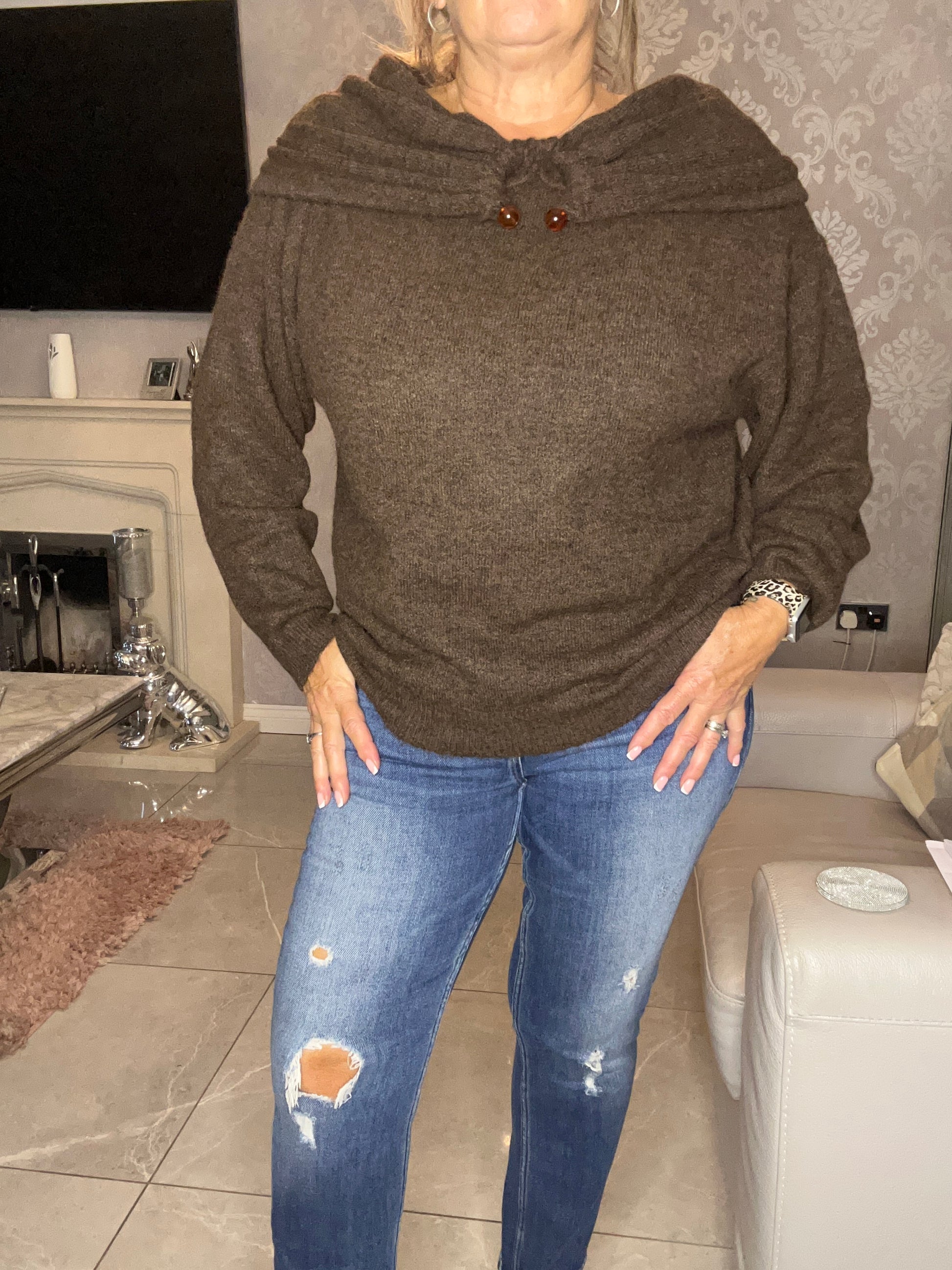 Discover effortless elegance with our stunning Ring off the Shoulder Jumper. This luxuriously soft Italian-made piece combines comfort and sophistication, featuring a unique ring detail that allows the jumper to gracefully fall off your shoulders for an effortlessly chic look.