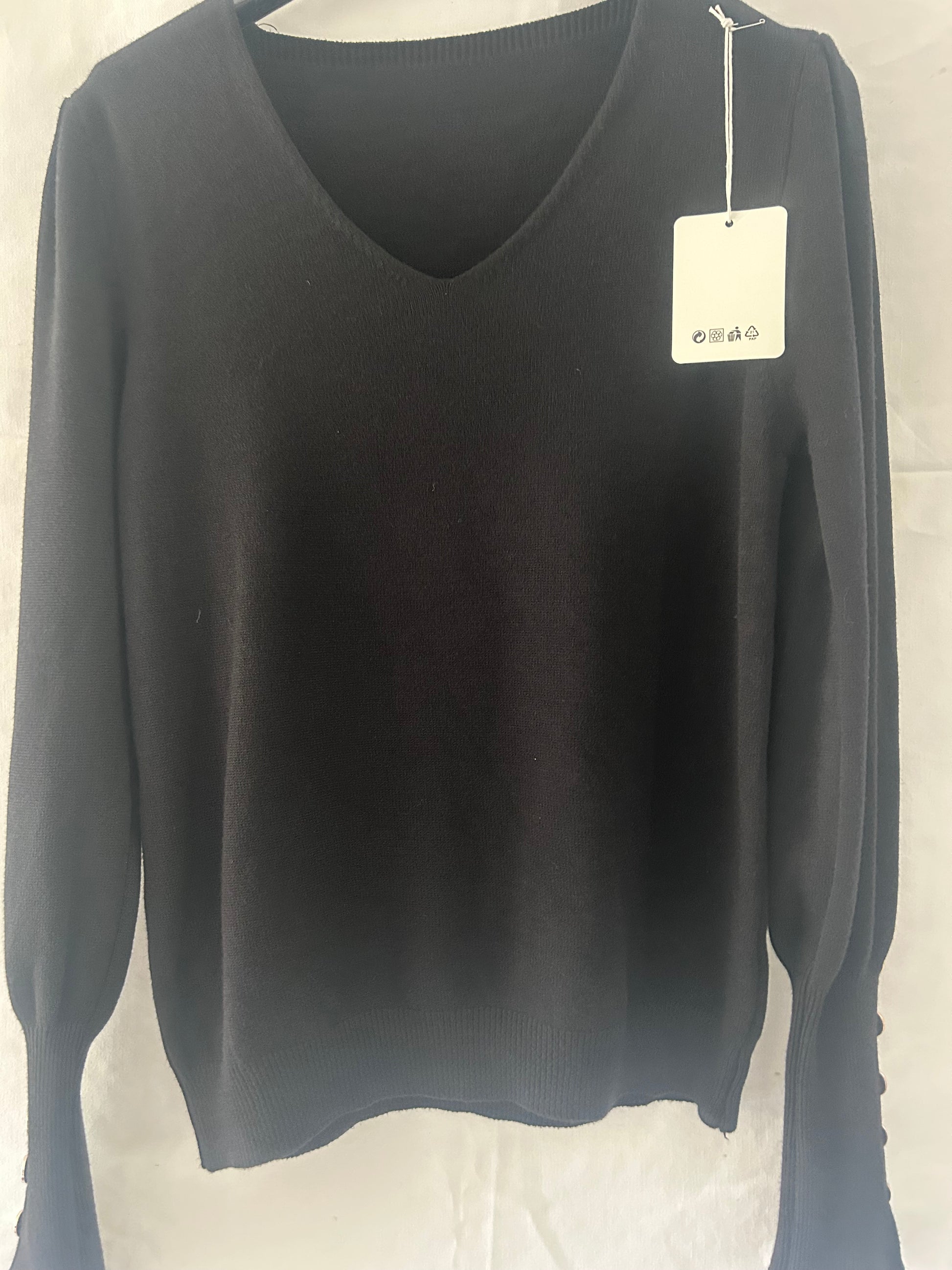 Discover the perfect blend of comfort and sophistication with our exquisite V-Neck Button Cuff Jumper, lovingly crafted in Italy. This isn't just another jumper – it's your go-to piece for those moments when you want to look effortlessly chic.